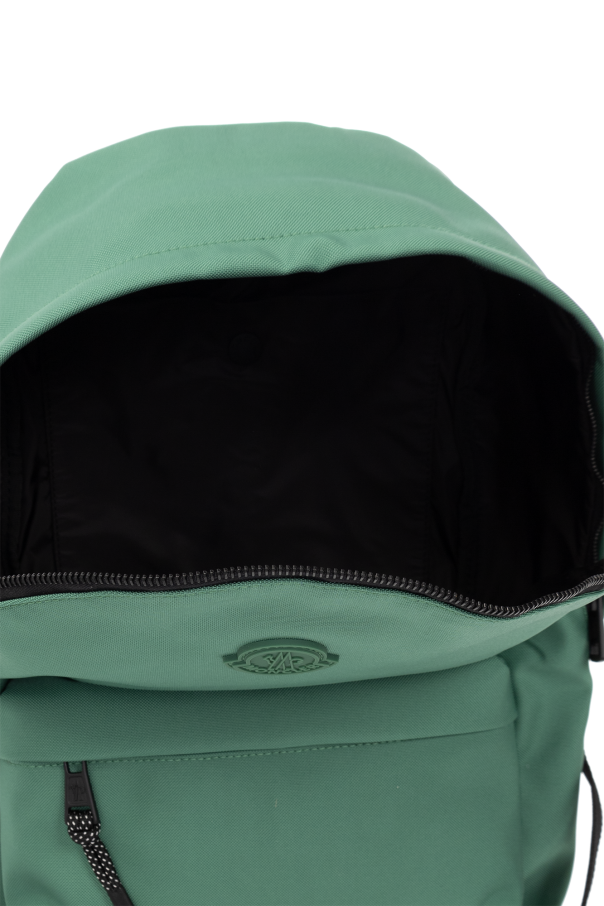 Green backpack from Moncler. Fastened with a zip, this model features a logo patch, zipped front pocket, half-round handle, adjustable shoulder straps, black metal hardware and one internal compartment with one slip pocket.