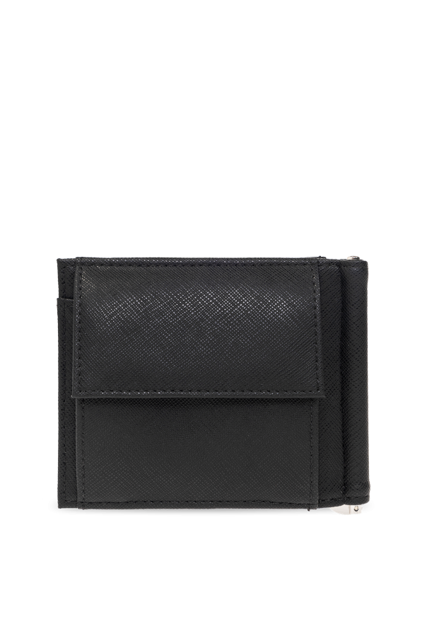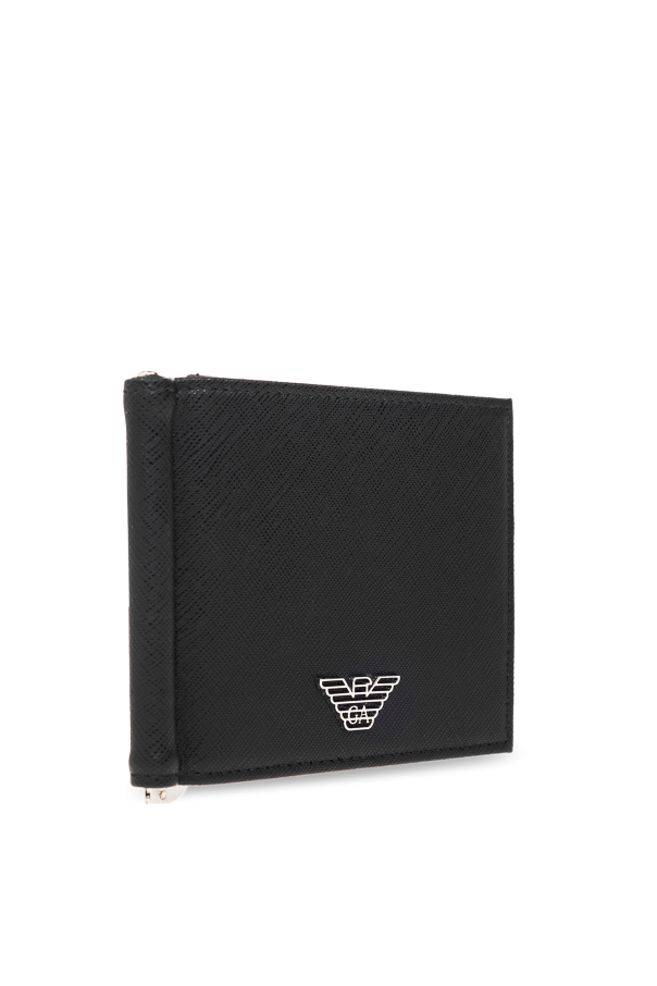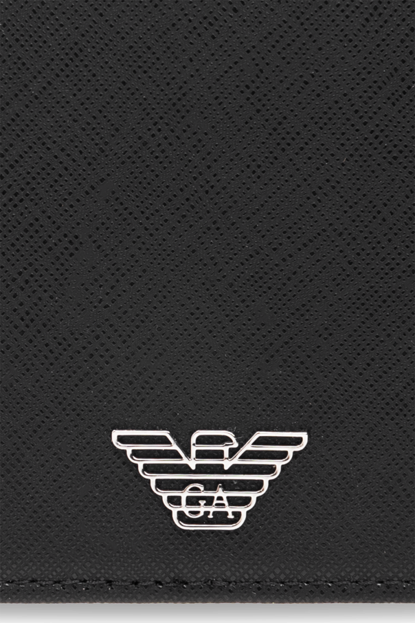 Black folding wallet from Emporio Armani, the ‘Sustainability’ collection. Made of canvas, this item features a logo appliqué on the front, zip coin pocket at the back, money clip, two slip pockets and three card slots inside.