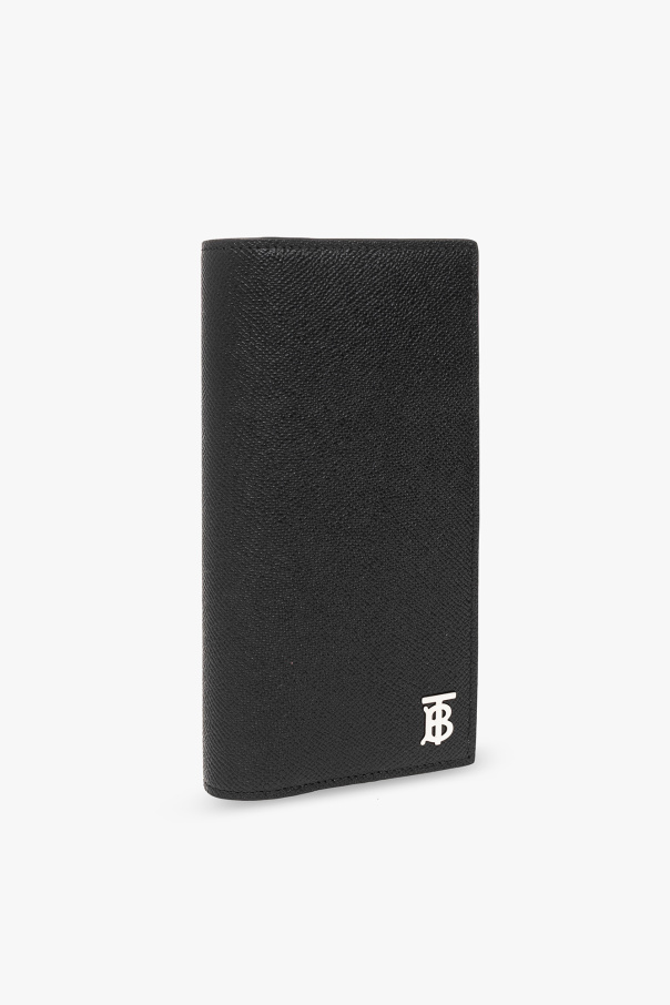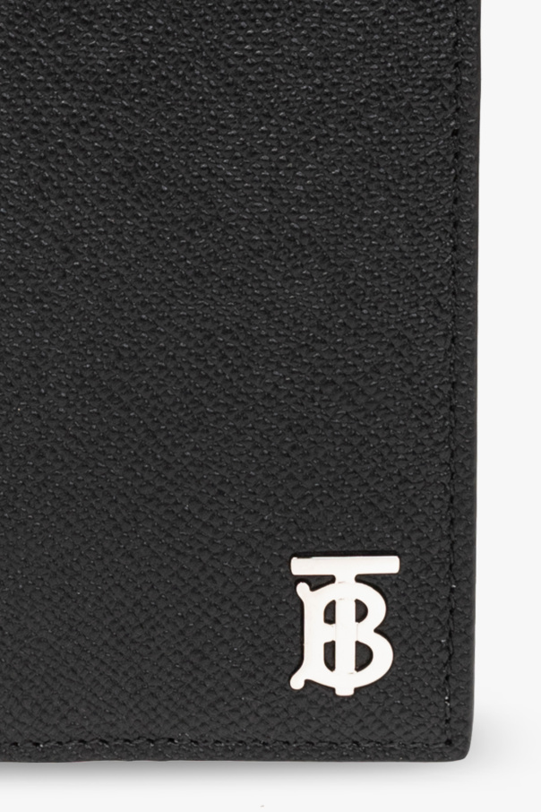 Black bifold wallet from Burberry. Made of grained calf leather, this design is decorated with a silver-tone metal logo detail and has one bill compartment, one zipped coin pocket, two slip pockets and sixteen card slots inside.