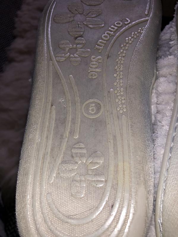 Чуть стерта пяточка ,указала на фото ,подошва чуть желтоватая в некоторых местах