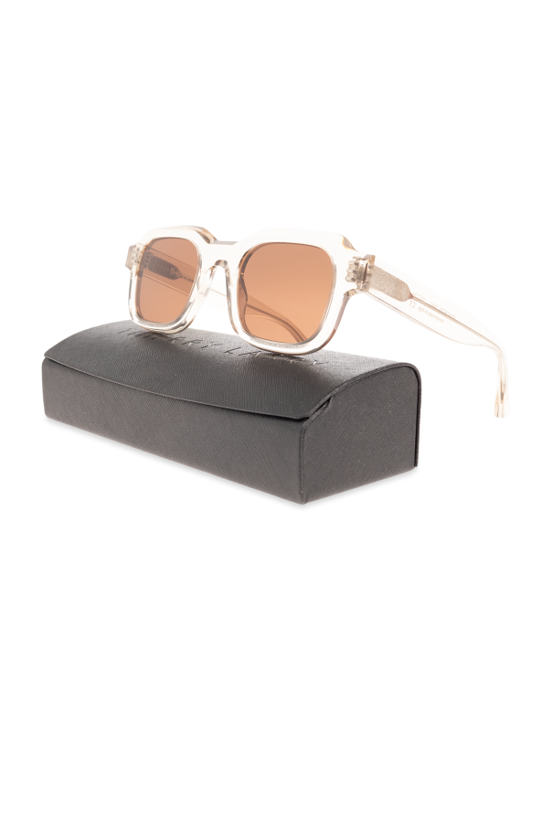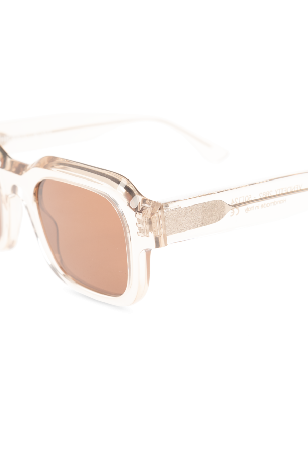 Light beige ‘Vendetty’ sunglasses from Thierry Lasry. Handcrafted in Italy, this rectangular frame design features an angular shape, light gold-tone insert at the temples and brown lenses with 100% UV protection. Comes with a case.