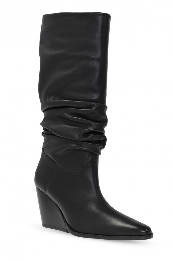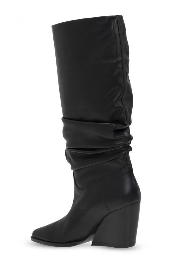 Black knee-high boots from Kenzo. Crafted from suppled leather, they sit on a black leather sole and showcase a draped effect.