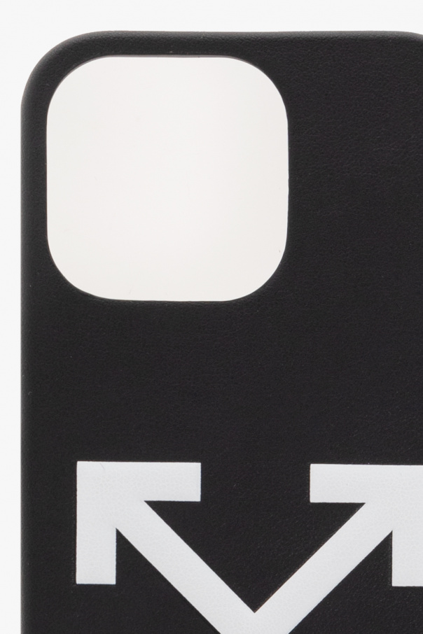 Black iPhone 13 Pro case from Off-White. Emblazoned with a tactile white logo at the back, this item features a yellow and black adjustable jacquard strap with the brand\'s logo and red stitching details.