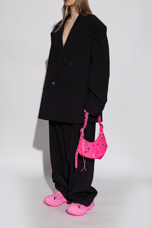 Pink ‘Bouncer\' sneakers from Balenciaga. Made of leather, this lace-up pair features mesh trims, logo detail, vintage effect and chunky sole in pink rubber.