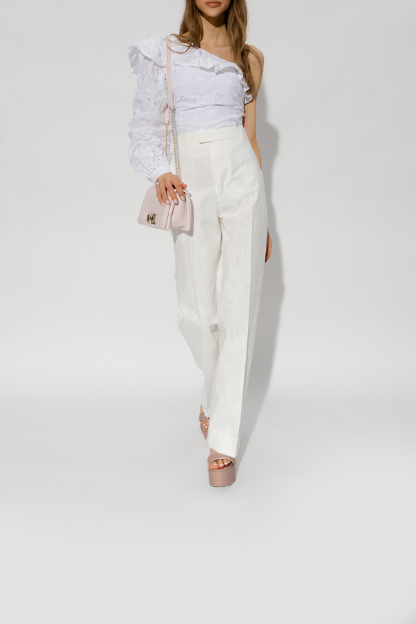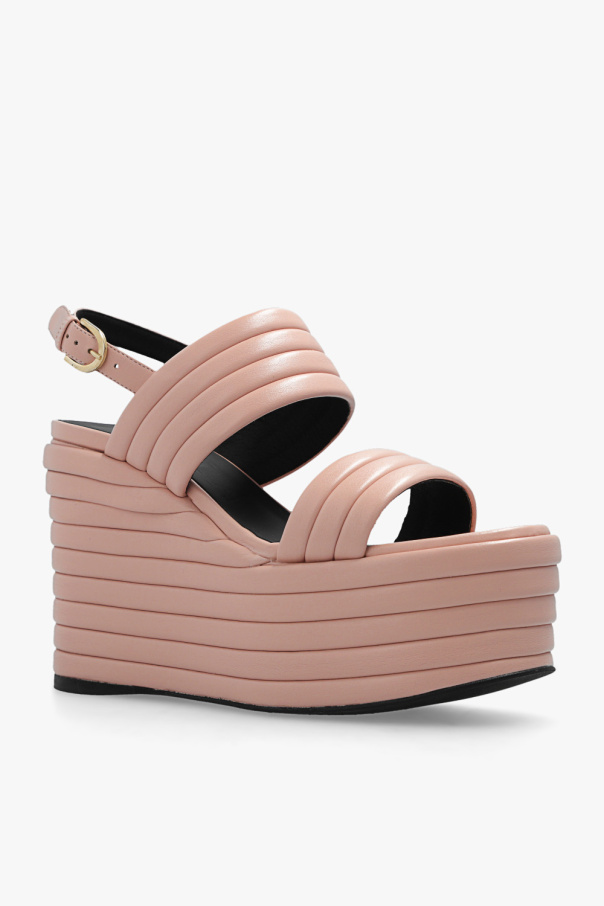 Pink ‘Fleur’ wedge sandals from Furla. Made of leather, this model sits on a black rubber sole and features an adjustable ankle strap with a buckle.