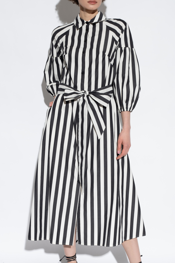Cream and black dress from Kate Spade. Made of cotton, this design features button fastenings, a self-tie waist belt, stripe pattern, two slip pockets and long sleeves with ribbed cuffs.