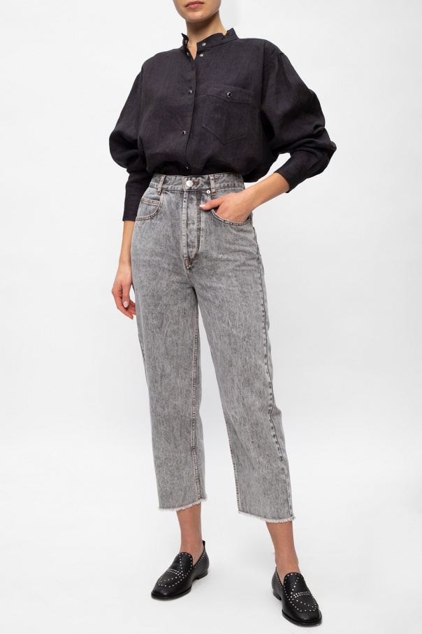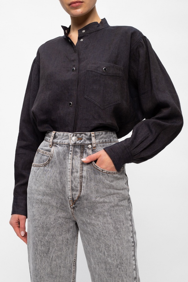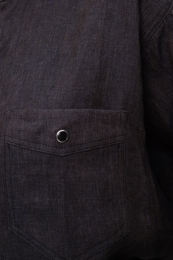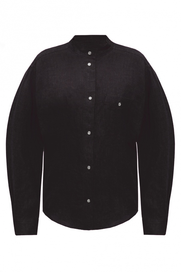 Dark grey shirt from Isabel Marant. Crafted from linen, this garment features snap fastenings, stitching details, 3/4 length sleeves and snap buttons at the pocket and cuffs.