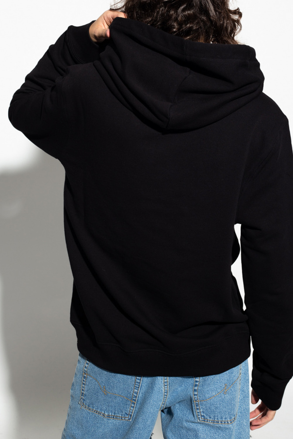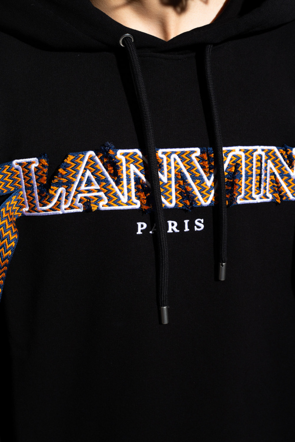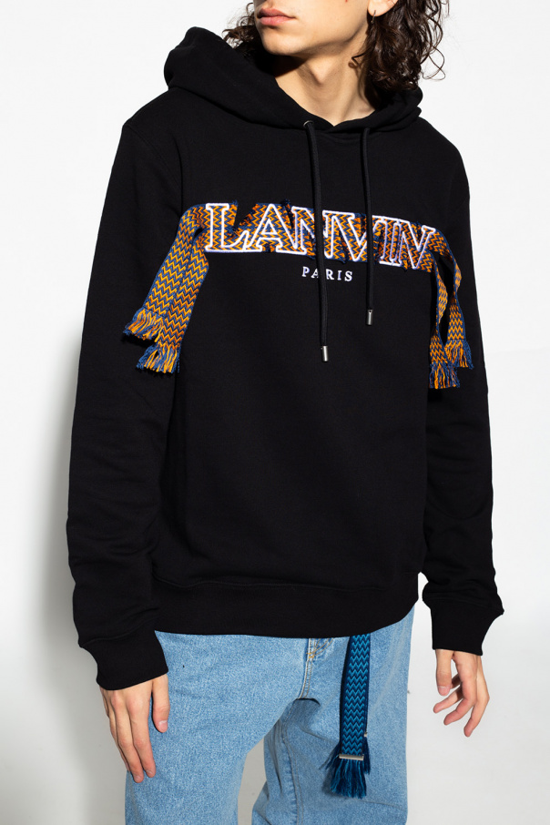 Black hoodie from Lanvin. Made of cotton, this garment features a white logo embroidery, decorative orange and navy finish and ribbed trims at the hem and cuffs.