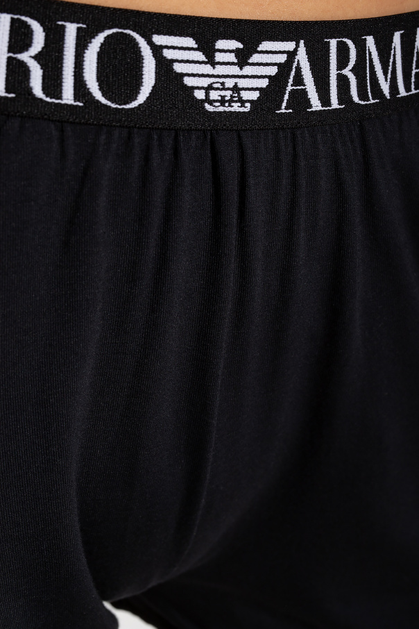 Black shorts with an elastic waistband, a logo and two slip pockets from Emporio Armani, the ‘Swimwear’ collection.