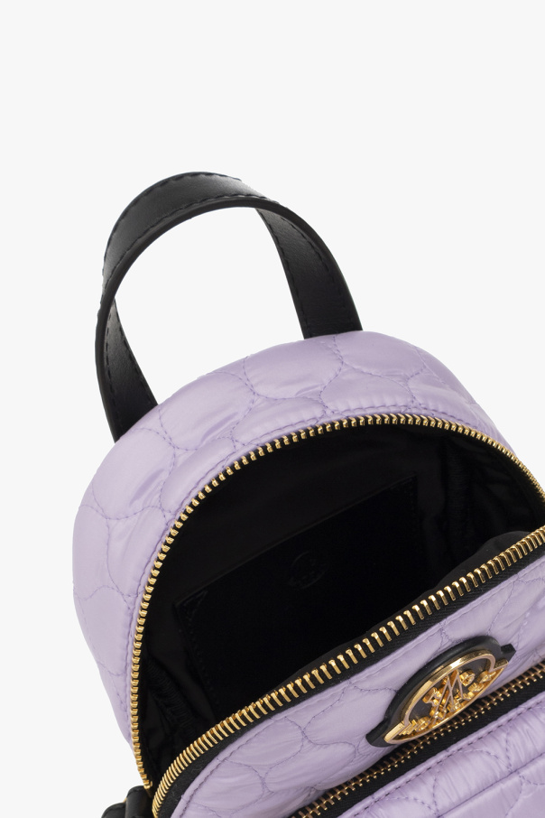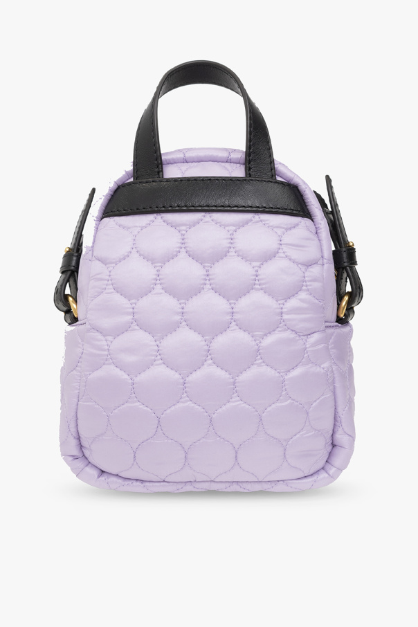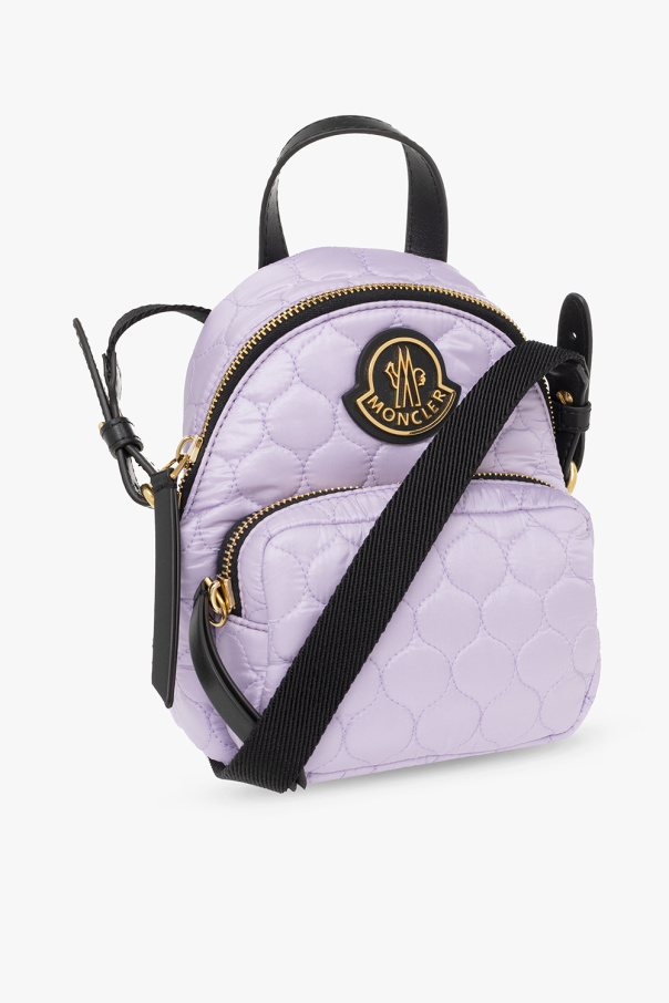 Purple and black ‘Kilia Small’ quilted shoulder bag from Moncler. Fastened with a two-way zip, this garment features a logo patch, front zip pocket, half-round handle, detachable shoulder strap, gold-tone metal hardware and one internal compartment with one slip pocket.