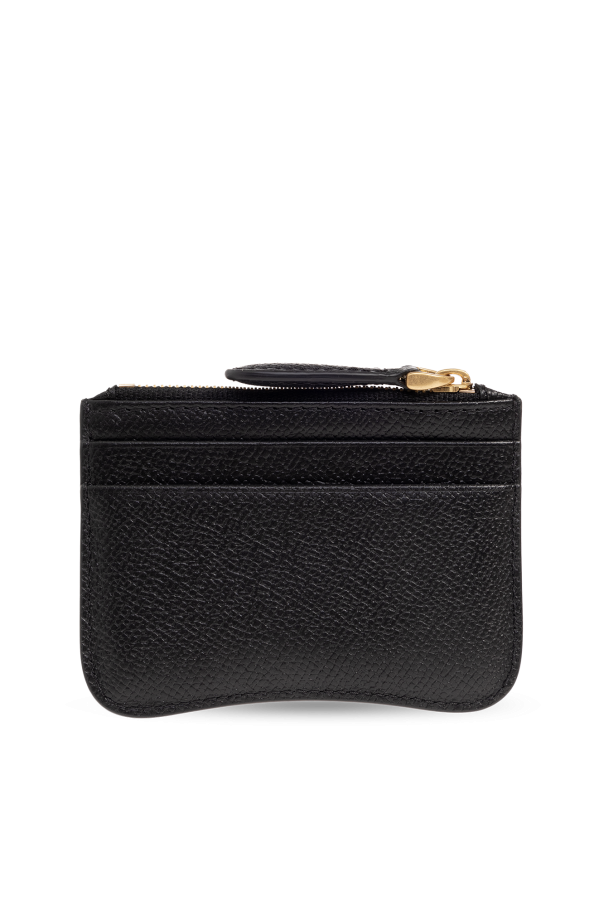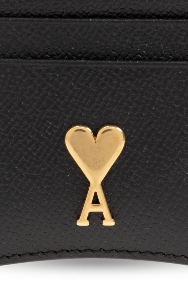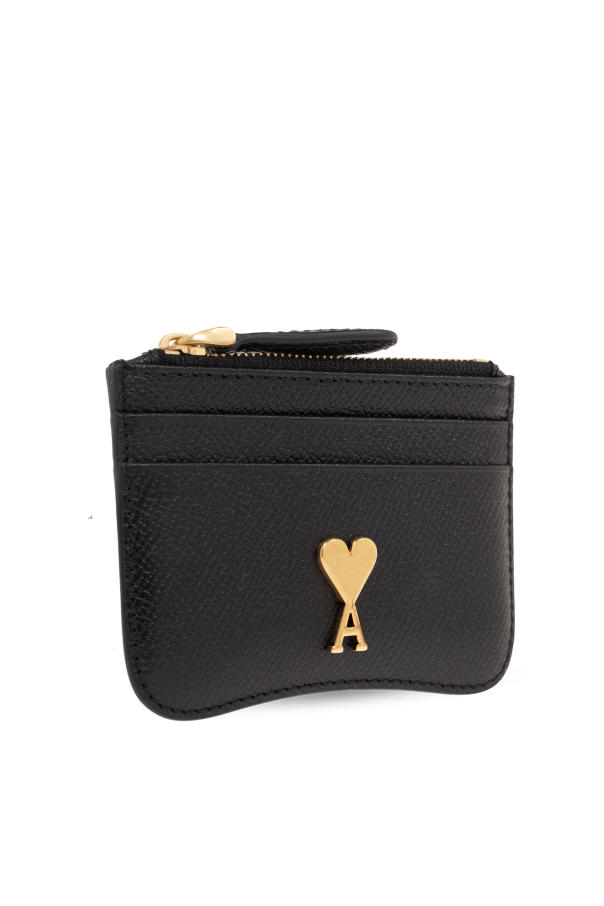 Black card holder from Ami Alexandre Mattiussi. Made of grained goat leather, this item features a metal logo detail in gold-tone, four card slots and one zip pocket.