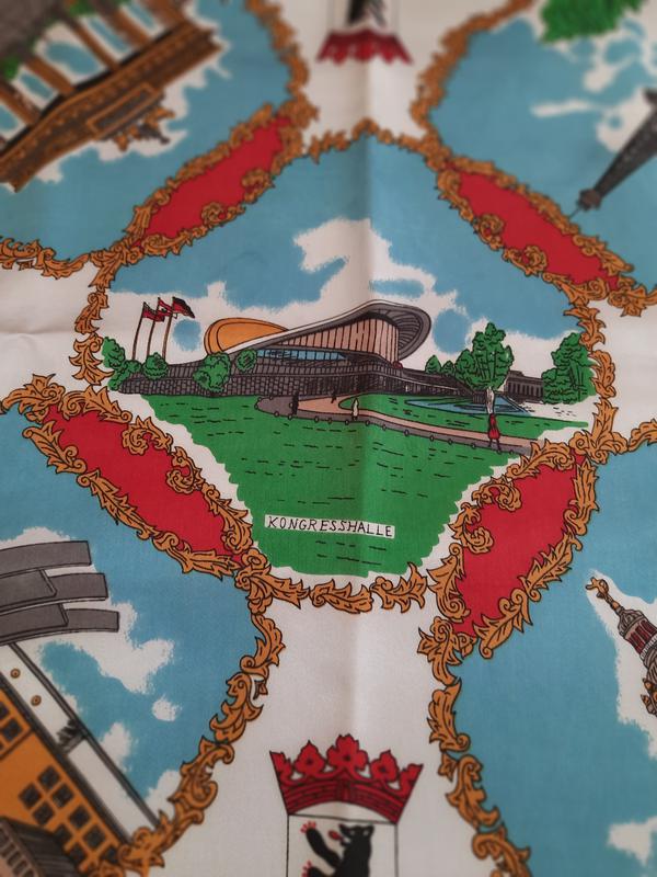 Яркий саржевый платок из ацетатного шелка.Достопримечательности Берлина.