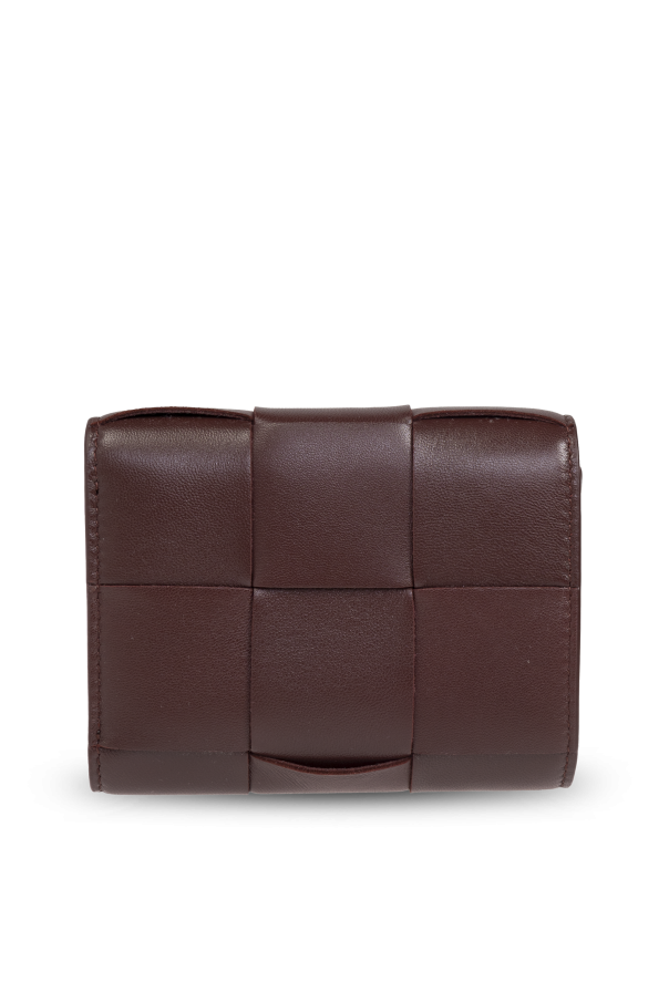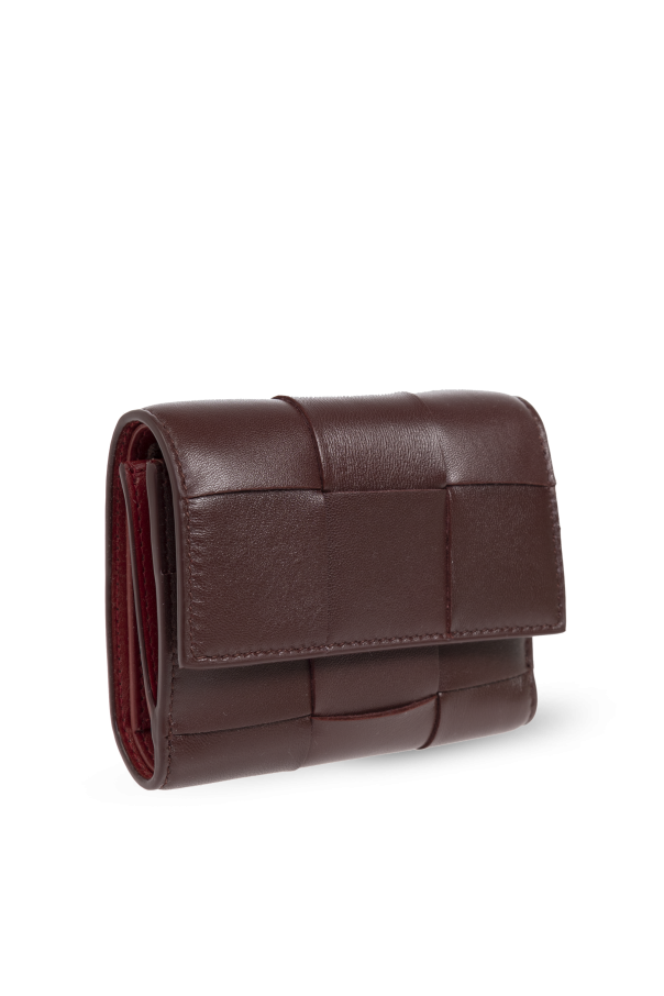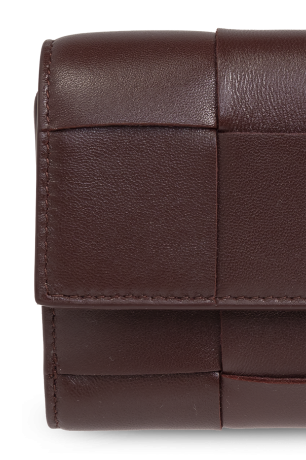 Introducing the Woven Wallet, a quintessential accessory from the illustrious house of Bottega Veneta, renowned for their reformist approach to craftsmanship since 1966. This piece, crafted from sumptuous lambskin, exudes sophistication with its exquisite woven pattern adorning the exterior in a rich burgundy hue. The wallet\'s rectangular silhouette features a secure snap closure, seamlessly blending practicality with elegance. Inside, it reveals a matching burgundy interior meticulously designed with compartments for cards, bills, and coins, ensuring organizational brilliance. A gilded zipper accentuates the luxurious aesthetic, epitomizing the brand\'s dedication to detail and quality. Why Choose This Product? Exquisite design from Bottega Veneta, a leader in luxury fashion. Crafted from 100% lambskin for unparalleled softness and durability. Elegant burgundy color with a distinctive woven pattern. Functional interior with multiple compartments for optimal organization. Luxurious gold zipper detail for a touch of opulence.