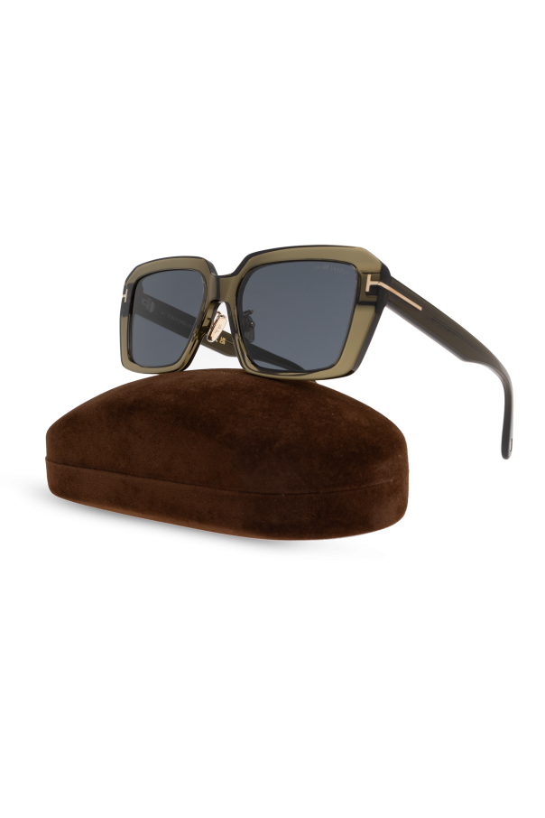 Introducing the Tom Ford Sunglasses—an epitome of luxury and style, embodying the exquisite vision of the iconic designer Tom Ford. These sunglasses feature a unique square shape with bold, green frames crafted from 100% acetate, exuding sophistication and modern elegance. The dark lenses, likely polarized, provide unmatched protection while enhancing visual clarity. The frames boast distinct edges, adorned with golden \"T\" details on the sides, a signature touch that echoes the designer\'s renowned aesthetic. Embellished with the \"TOM FORD\" logo atop the lenses, these sunglasses rest in a plush brown case, reflecting their exclusive nature and meticulous craftsmanship. Why Choose This Product? Designed by the illustrious Tom Ford, former creative director of Saint Laurent and Gucci, and a seven-time CFDA award winner. Features distinctive golden \"T\" embellishments that are quintessential to Tom Ford\'s design language. Comes with a luxurious brown case, underscoring its premium quality.