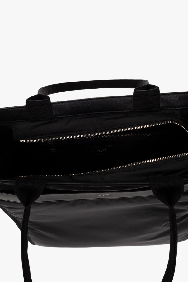 Black ‘City’ shopper bag from Saint Laurent. Made of regenerated fabric, this design is complete with a zip fastening, front pocket with a magnetic snap and logo print, zipped back pocket, two half-round handles, silver-tone metal hardware and one internal compartment with one zip pocket and one snap-fastened pocket.