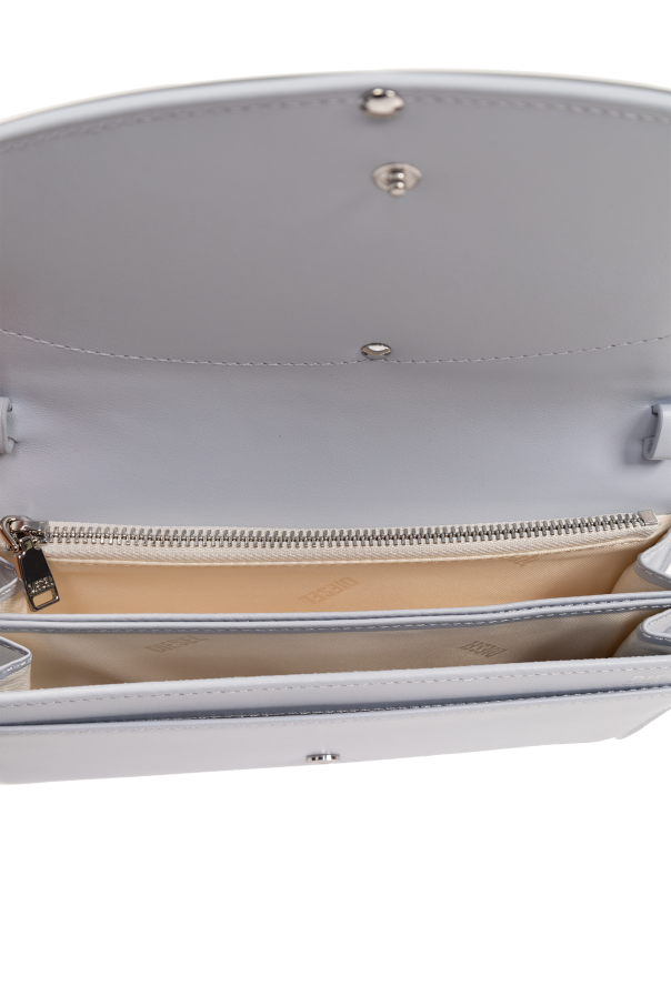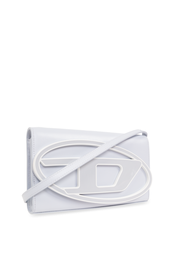 Light blue ‘1DR‘ strapped wallet from Diesel. Made from leather, this design fastens via snap and showcases a blue and white logo application on the front, silver-tone metal hardware as well as a detachable and adjustable strap and an interior with two compartments, one zip pocket, three slip pockets and eight card slots.