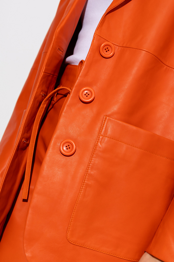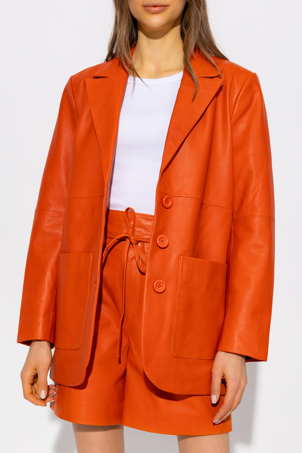 Orange ‘Ronda GZ’ blazer from Gestuz. Made of sheep leather, this model features peak lapels, two slip pockets, single rear vent and long sleeves with button cuffs.