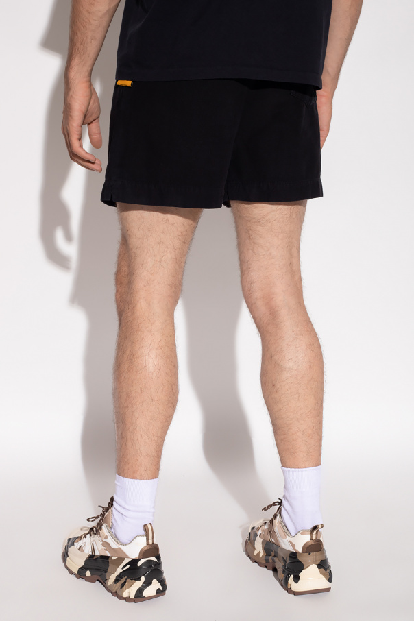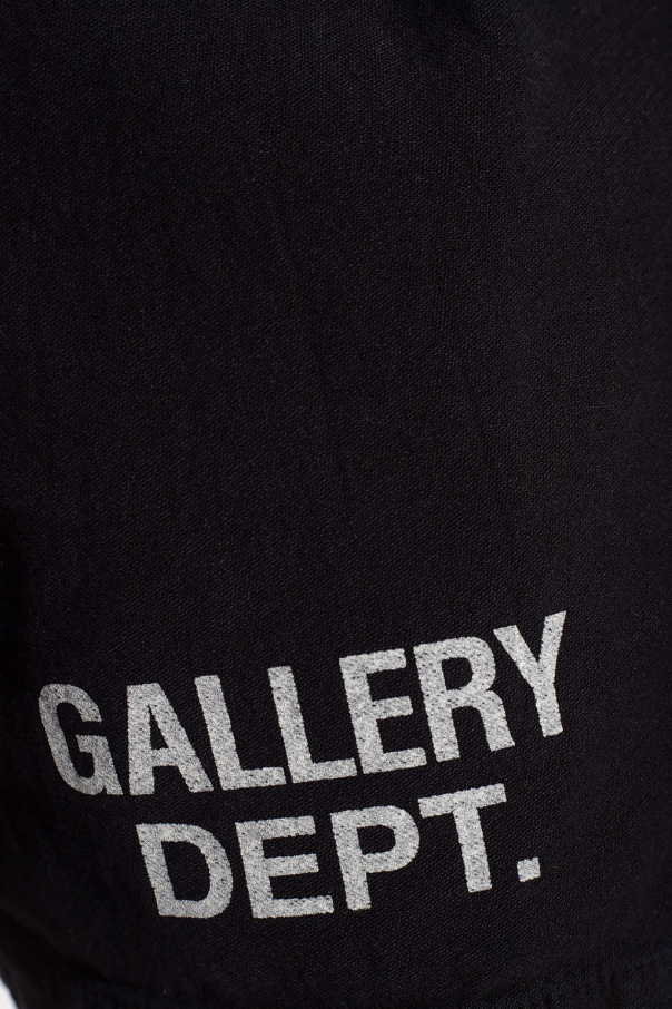 Black shorts from GALLERY DEPT. Crafted from cotton, this pair features a drawstring waistband, three slip pockets and a white logo print for brand recognition.