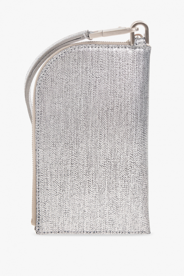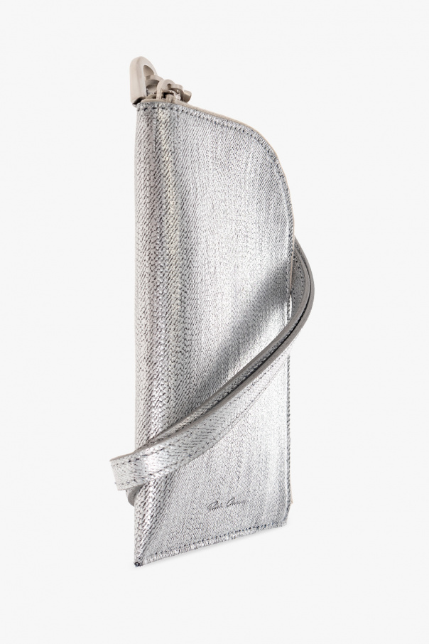 Silver-tone wallet from Rick Owens. Crafted from cotton, this item fastens with a zip and features an embossed logo, detachable neck strap and one internal compartment.