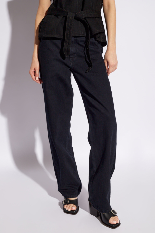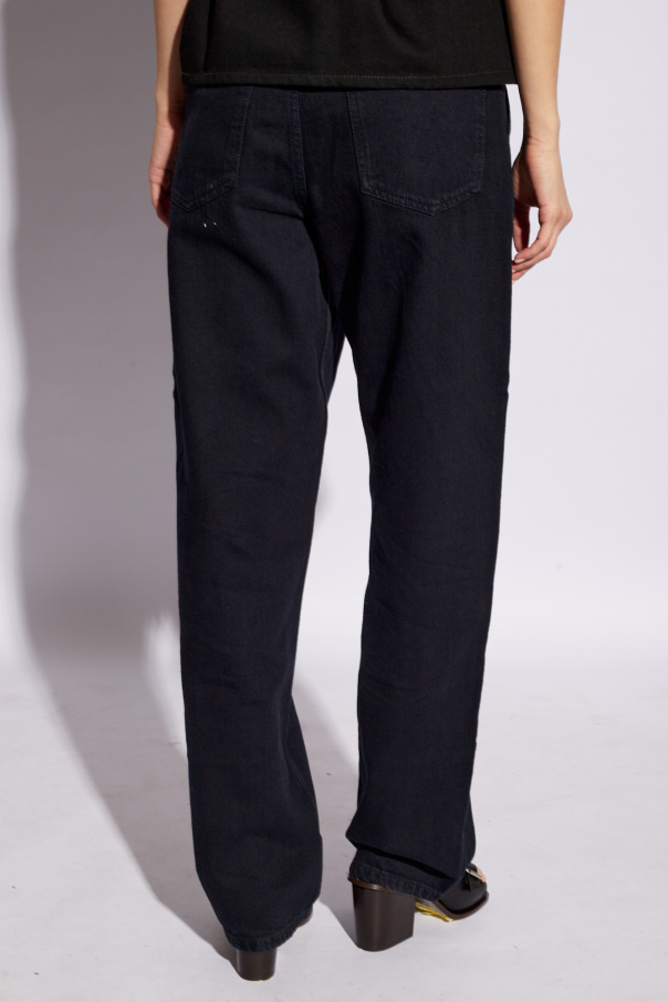 Black jeans from Lemaire. Cut with a high-rise waist, this pair falls with wide, straight legs and features a zip fly with a button and four slip pockets.