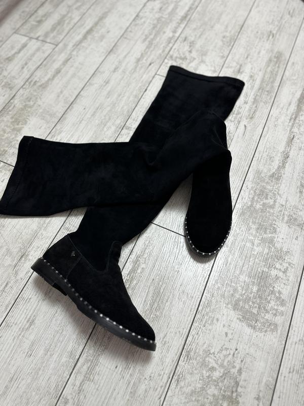 Размер 38.Стан отличный.очень высокие.Низ натуральная замша.Верх стрейч-замша.дректов нет.Торгу нет.купались за 4000.Ведам за 2200.Отправка каждый день