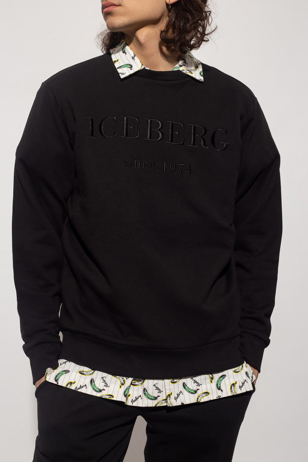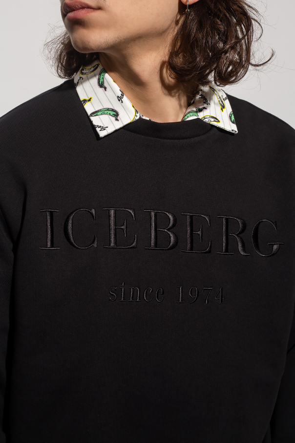 Black crewneck sweatshirt from Iceberg. Made of cotton jersey, this style features logo embroidery on the front and ribbed trims on the bottom hem and cuffs.