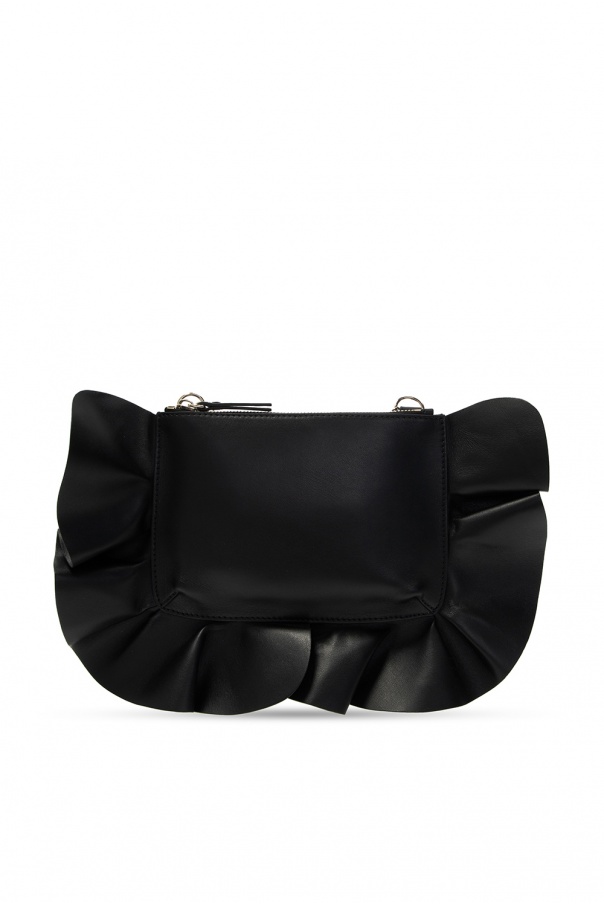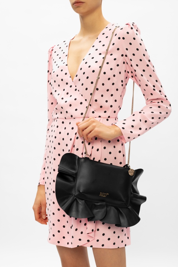 Black shoulder bag from Red Valentino. Crafted from leather, this item features a zip fastening, gold-tone logo print on the front, gold-tone chain and one internal compartment.
