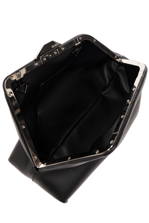 Black ‘Day Off’ handbag from The Attico. Made of lamb leather, this design fastens with a logo-engraved snap and features a detachable and adjustable shoulder strap, silver-tone metal hardware and one internal compartment with a card slot.