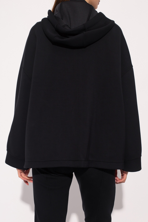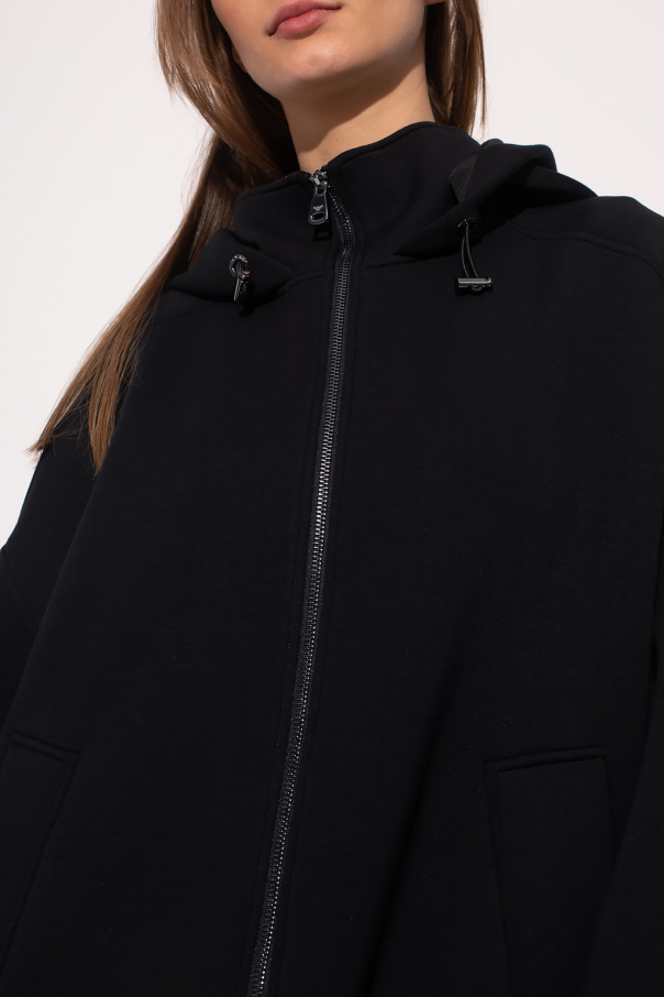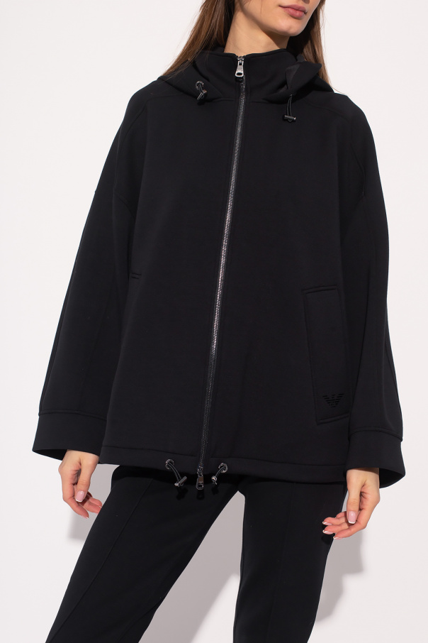 Black sweatshirt with a standing collar from Emporio Armani. Enriched at front by a graphic print with the brand\'s logo, this style features a two-way zip fastening, two slip pockets, long sleeves and a drawcord-adjustable hood and hem.