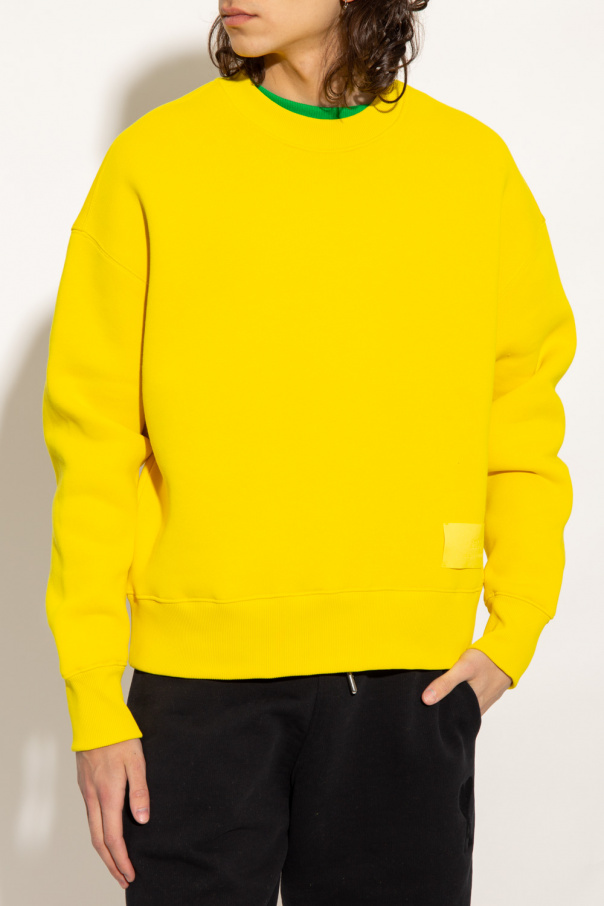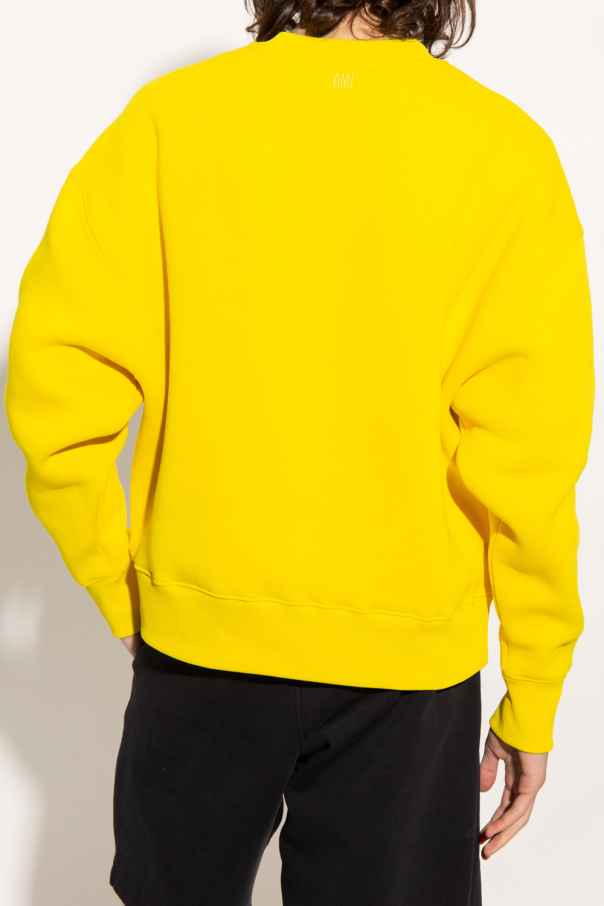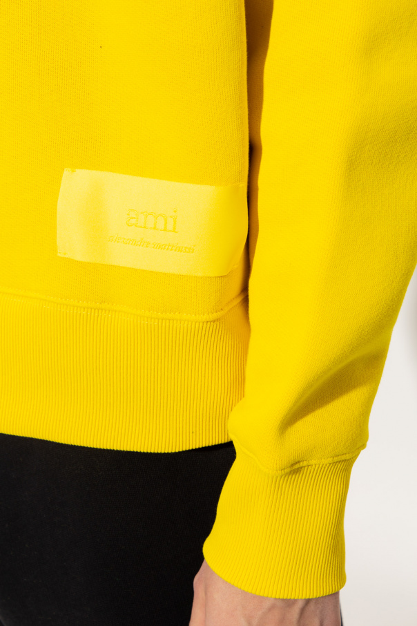 Yellow crewneck sweatshirt from Ami Alexandre Mattiussi. Crafted from a cotton blend, this style features a logo patch on the front, an embroidered logo at the back and ribbed trims on the collar, bottom hem and cuffs.