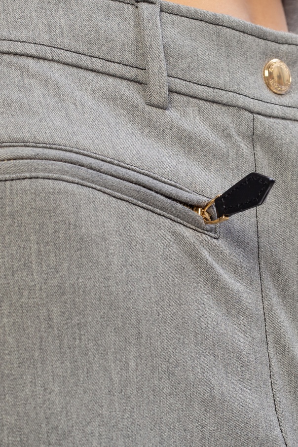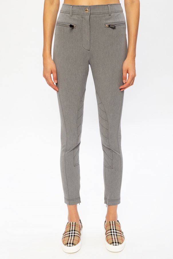 Grey trousers from Burberry. Fastened with a zip and snap, this item comes with stitching details and two front zip pockets.