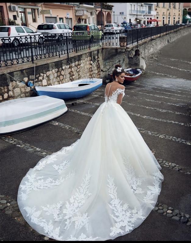 Весільна сукня ALEGRI з дуже довгим шлейфом кольору шампань з