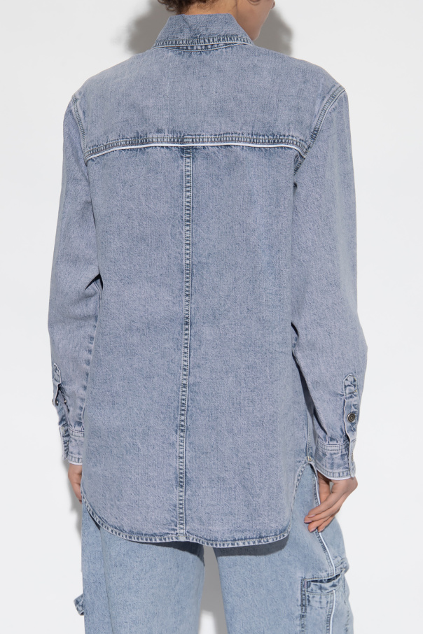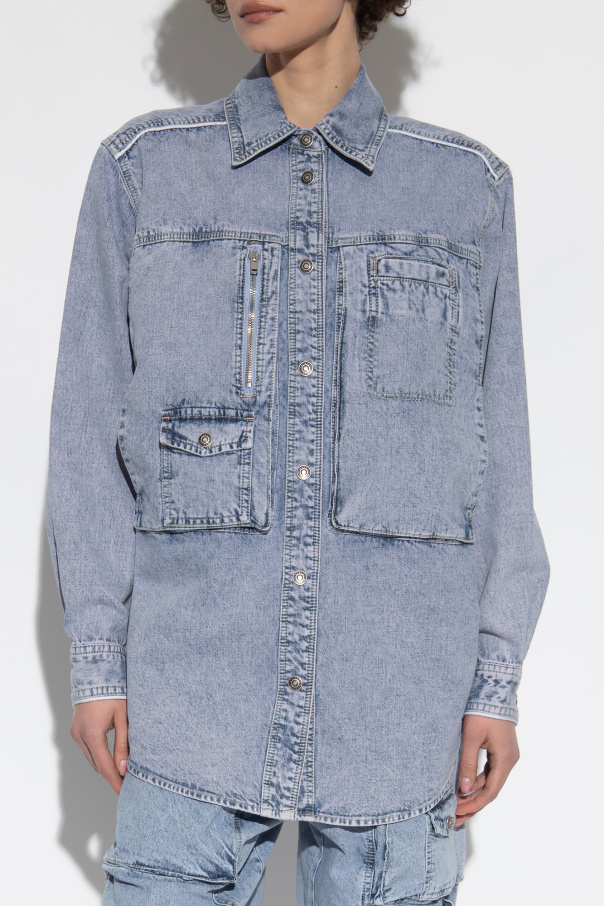 Blue ‘Pearl’ oversize denim shirt from Isabel Marant. Fastened with snap buttons, this design features multiple pockets on the front, a collar, vintage effect and long sleeves with snap-fastened cuffs.
