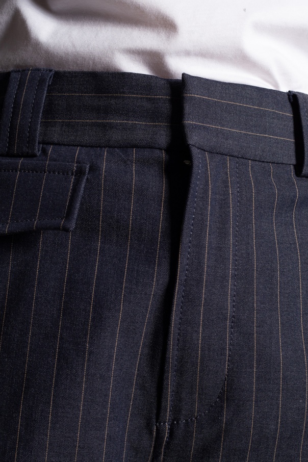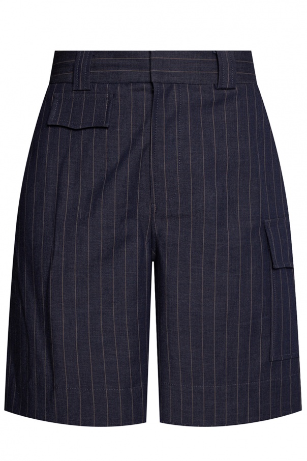 Navy shorts from Ganni. Fastened with a zip and hooks, this design features a stripe pattern, four slip pockets and a snap-fastened flap pocket.