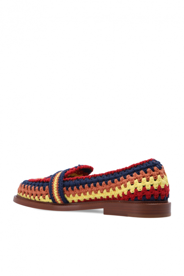 Multicoloured ‘Kalya’ loafers from Chloé. Crafted from cotton mesh, this model sits on a brown leather sole.
