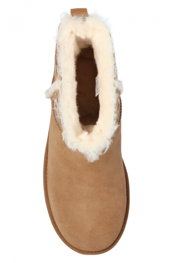 Beige ‘Classic Beauty Mini’ snow boots from UGG. Made of suede, this garment features a logo patch, multicolored embroidered pattern, UGGplush wool lining and a beige EVA sole.