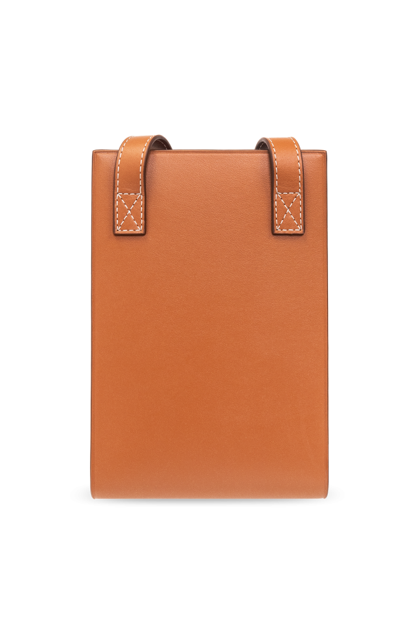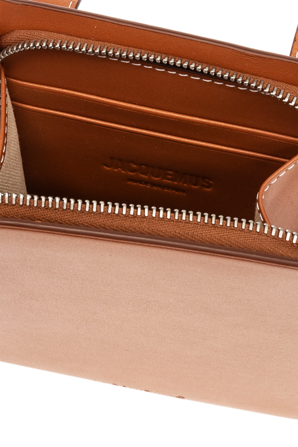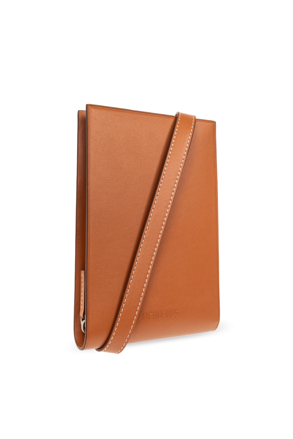 Brown ‘Le Gadju’ phone pouch from Jacquemus. Made of leather, this design features a zip fastening, an embossed logo, shoulder strap, one internal compartment with three card slots and silver-tone metal hardware.