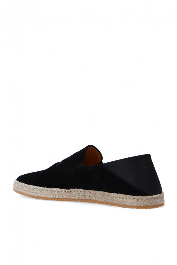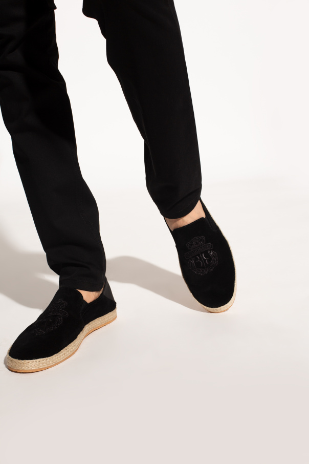 Black and beige espadrilles from Billionaire. Crafted from suede, this pair features a logo embroidery and brown rubber sole.