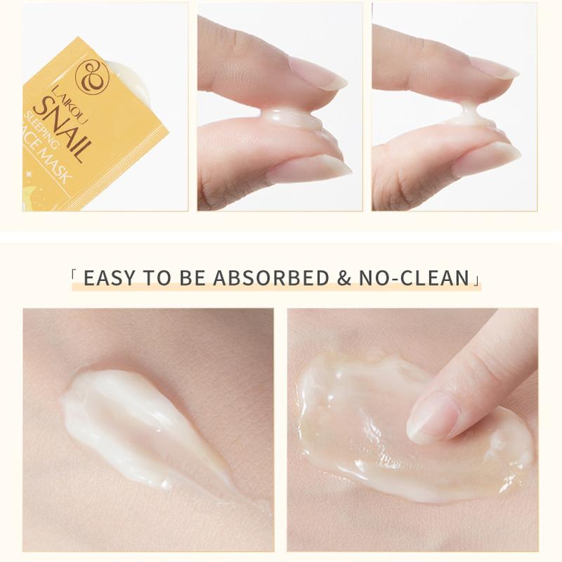 Ночная маска для лица с фильтратом слизи улитки Laikou Snail Sleeping Face Mask ценится своим богатым составом. Она разглаживает мимические и глубокие морщины, а также предотвращает появление новых. Возвращает потерянную упругость, эластичность кожи, создает невидимый барьер от прямого попадания УФ-лучей, негативного влияния окружающей среды. Витамины А, С, Е, входящие в состав, интенсивно питают и увлажняют кожный покров. Природный компонент аллантоин предупреждает преждевременное старение кожи. Эластин регулирует работу сальных желез.