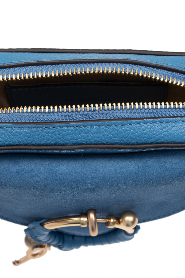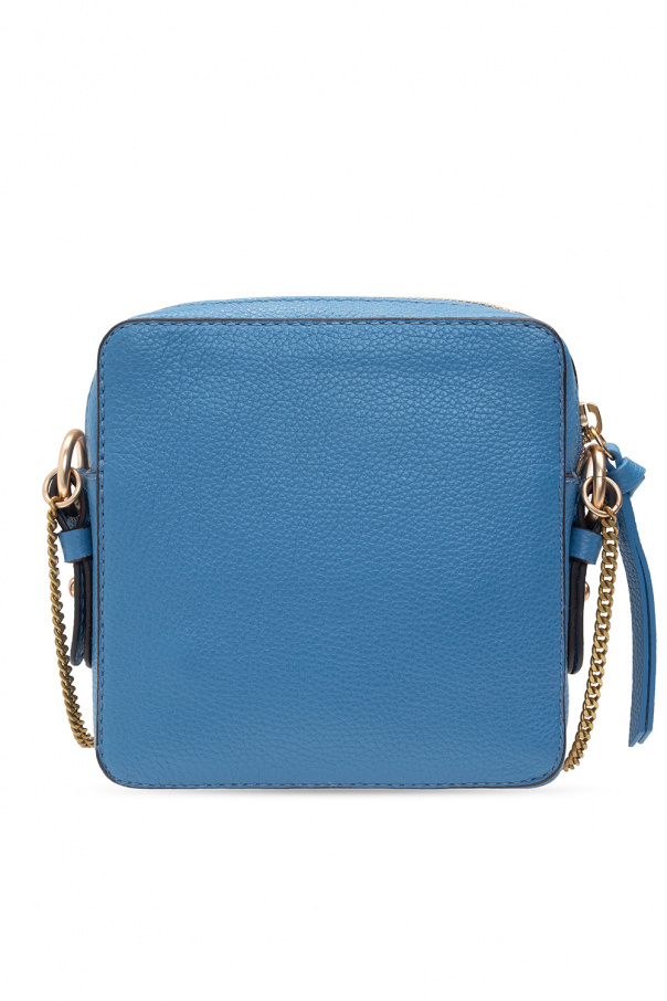 Blue ‘Joan’ shoulder bag from See By Chloé. Crafted from leather and suede, this model features a zip fastening, snap pocket, metal ring braided with leather with logo charms, detachable chain-reinforced strap, gold-tone metal hardware and one internal compartment with one card slot.