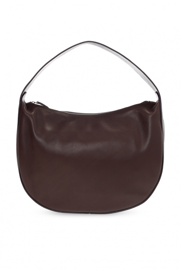 Brown 'Allie’ handbag from The Row. Crafted from leather, this design fastens via a zipper and showcases a silver-tone logo pattern. It is complete with a hand strap, silver-tone metal hardware and one internal compartment with two slip pockets and one zipped pocket.