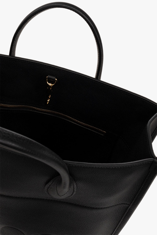 Black shopper bag from Gucci. Crafted from calf leather, this model features a carabiner hook, embossed logo, two half-round handles, detachable, adjustable shoulder strap, gold-tone metal hardware and one internal compartment with one zip pocket.