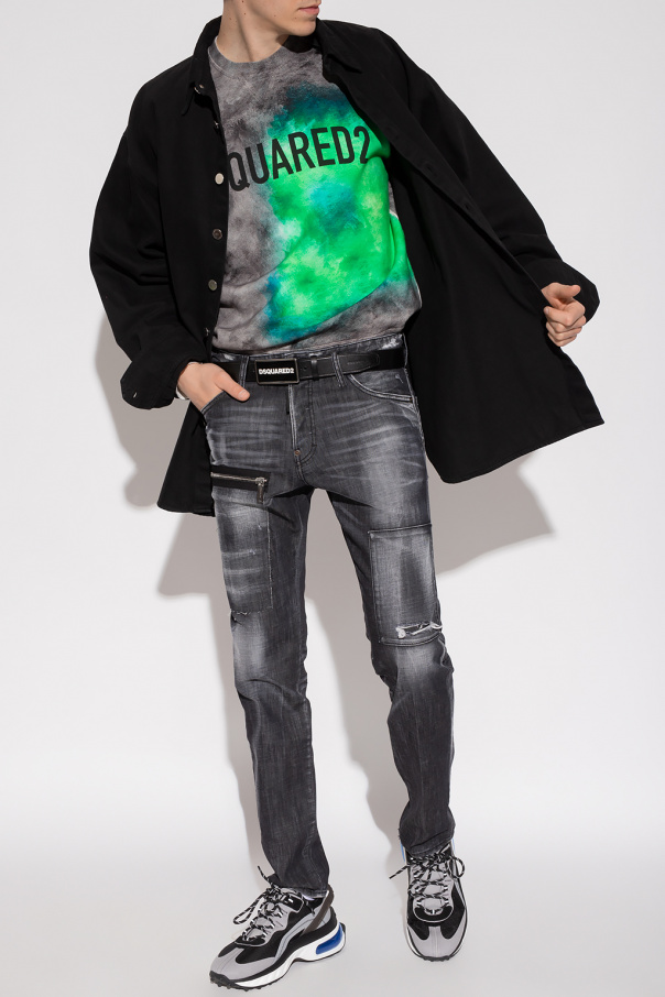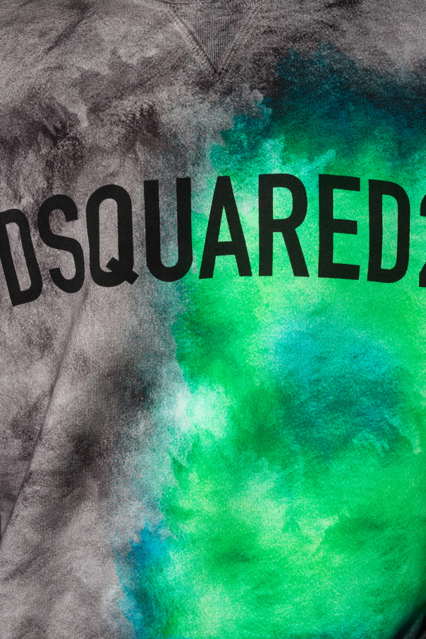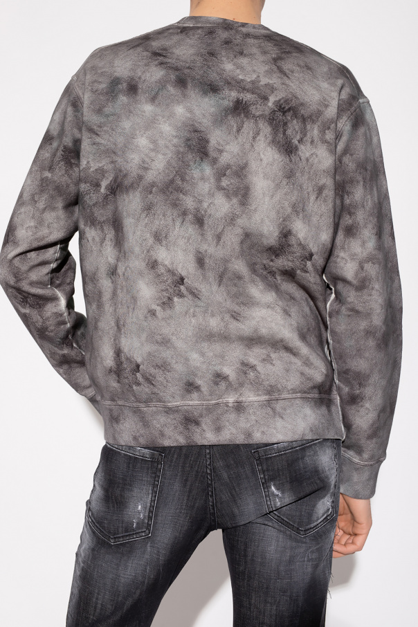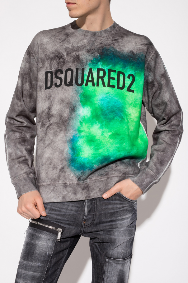 Grey, green and blue crewneck sweatshirt from Dsquared2. Crafted from cotton, this garment features a tie-dye pattern, black logo and ribbed trims at the crew neck, hem and cuffs.