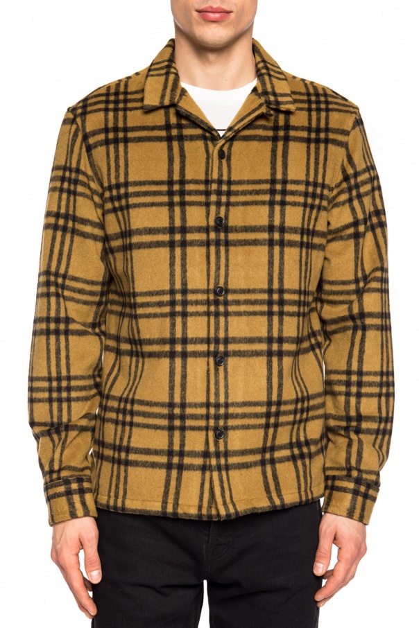 Yellow ‘Zenith’ shirt from AllSaints. Button fastening. Decorated with checkered pattern in black. Side slits.