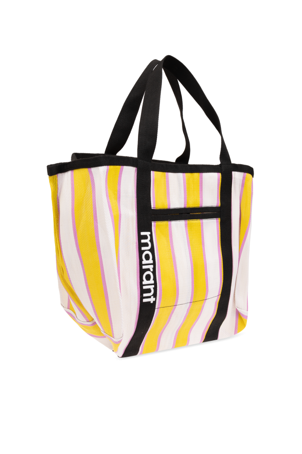 Multicolored ‘Darwen’ shopper bag from Isabel Marant. Decorated with a stripe pattern and a logo embroidery, this model features a front and back pocket, two half-round handles, black trimming and one internal compartment with one zip pocket.