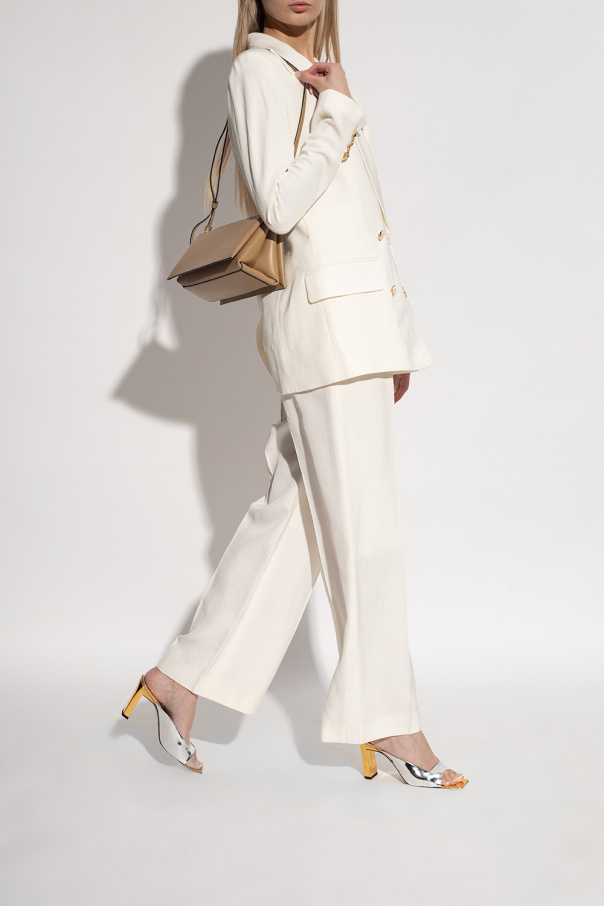 Silver-tone and gold-tone ‘Isa’ mules from Wandler. Crafted from lamb leather, this model sits on a cream leather sole and features a square toe.