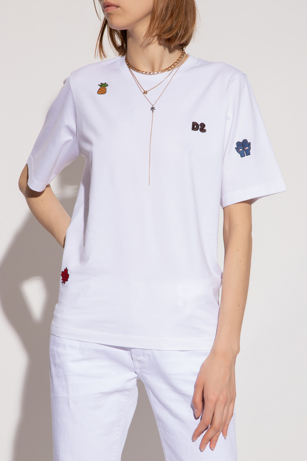 White T-shirt from Dsquared2. Made of cotton, this short sleeve design features a multicolored embroidered pattern, logo detail and ribbed crew neck.