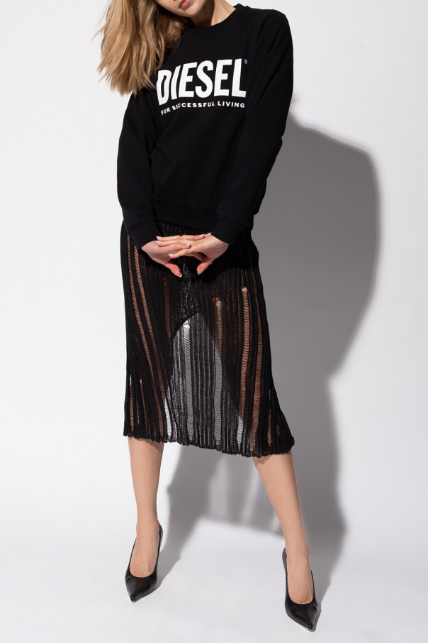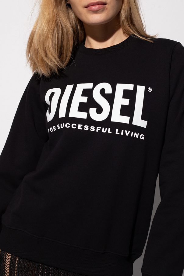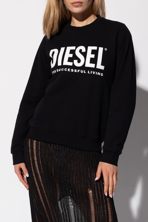 Black ‘F-Angs’ sweatshirt from Diesel. Made of cotton, this garment features a printed logo pattern in white and ribbed trims at the neck, hem and cuffs.
