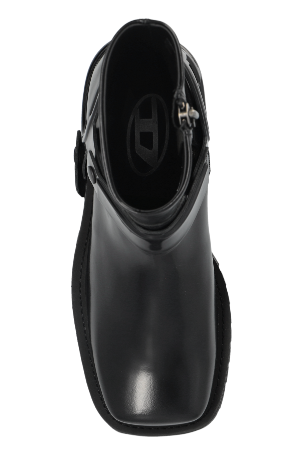 Introducing the D-TEXAN ankle boots, a sophisticated offering from the exclusive collection of the esteemed Italian brand Diesel. Crafted with premium leather exuding a lustrous finish, these boots encapsulate both classic elegance and contemporary flair. The sleek, rounded toe pairs harmoniously with the robust sole, featuring a prominent tread for superior traction. Adorned with decorative straps embellished with metallic studs, the exterior radiates an understated opulence, while the side zipper ensures effortless wearability. Designed for the discerning gentleman, these boots boast a minimalist aesthetic, rendering them versatile for an array of occasions. Why Choose This Product? Exquisite Craftsmanship: High-quality leather inside and out. Unique Design: Merges classic and modern elements seamlessly. Functional Elegance: Side zipper for easy access. Renowned Brand: Diesel\'s legacy of excellence since 1978.