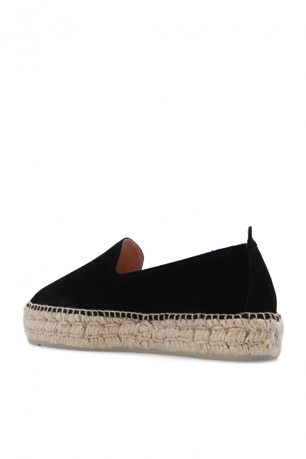 Black ‘Hamptons’ espadrilles from Manebi. Made of suede, this model features an embossed logo on the side and a natural jute sole with a thin rubber layer in grey.